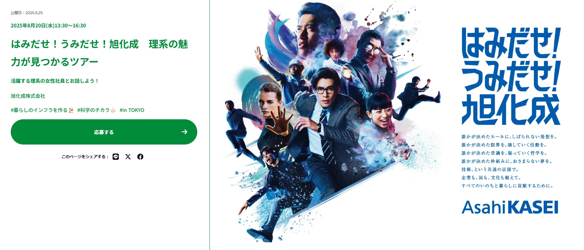 2025年8月、旭化成が女子中高生を対象に、理系の仕事を知ってもらうための社内ツアーを開催されるようです。