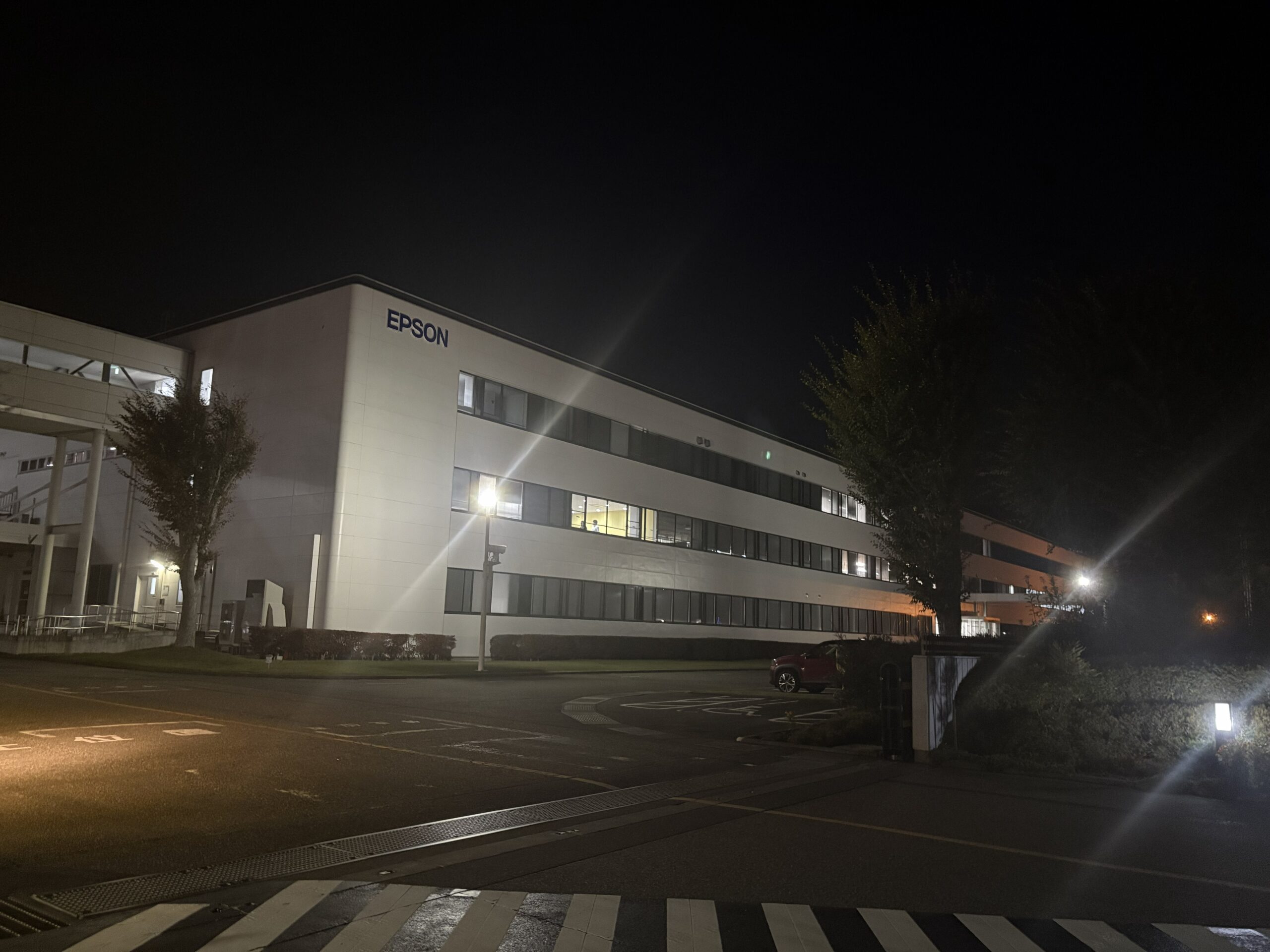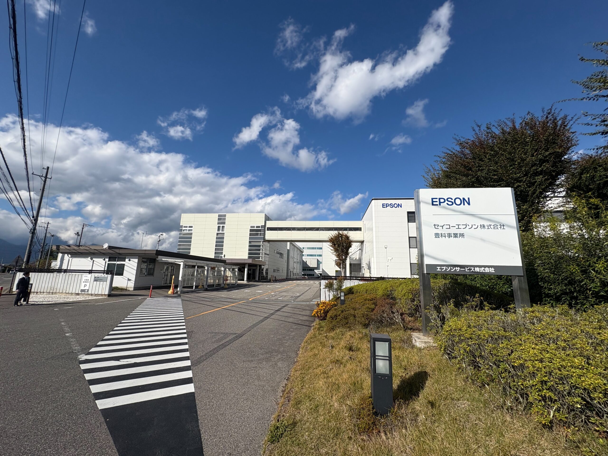 施設全体の外観としては、よく見る製造業の開発拠点といった印象ですが、全体的にとてもきれいで整っていました。すれ違う社員の方が自然に挨拶をしてくださるなど、敷地内を歩いているだけでセイコーエプソンさんの社風の良さが伝わってくるような雰囲気があり、「気持ちよく働ける環境だな」という印象を強く受けました。