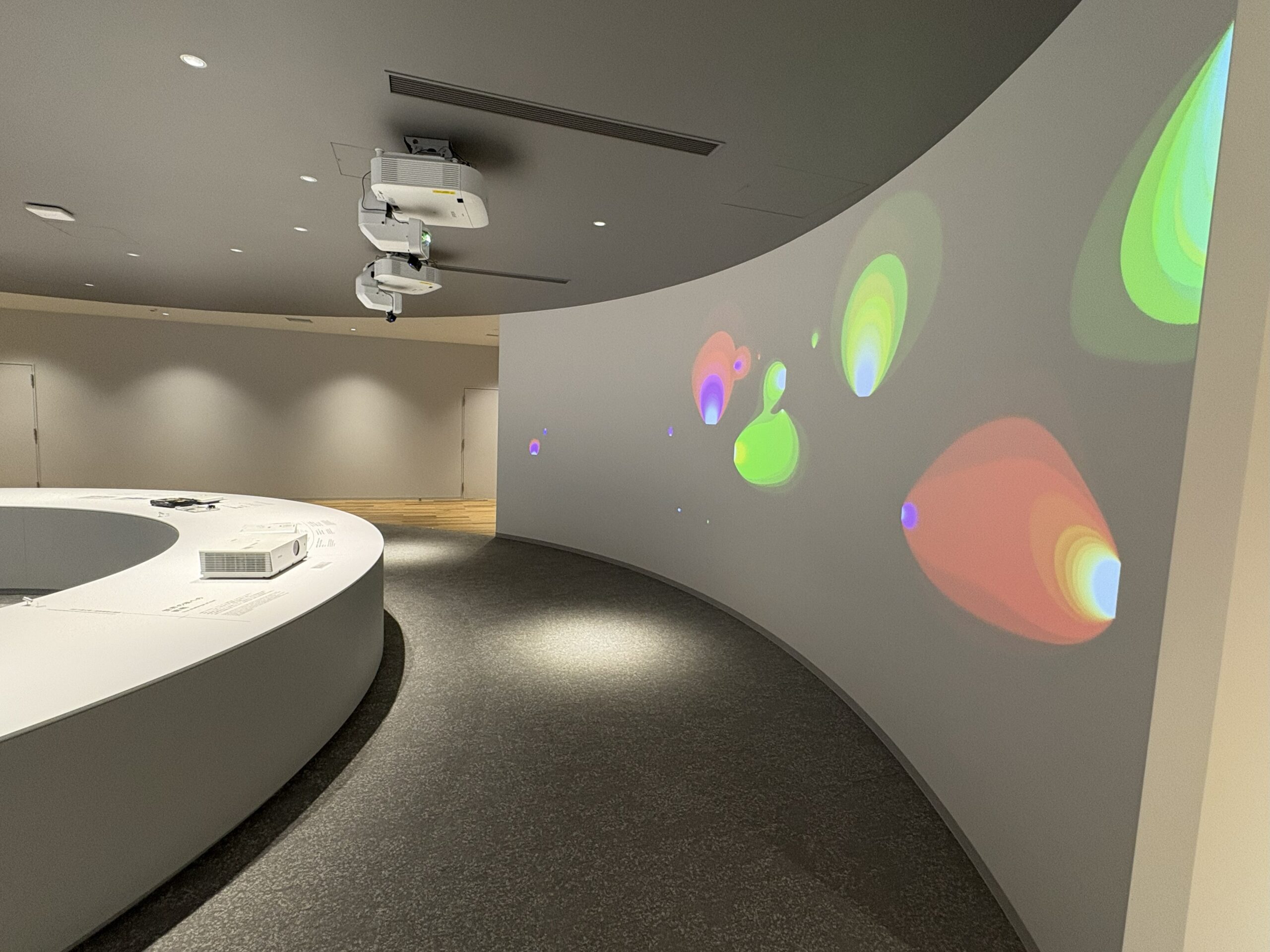 奥の壁には、色が変化し続ける投影映像が映し出されていました。