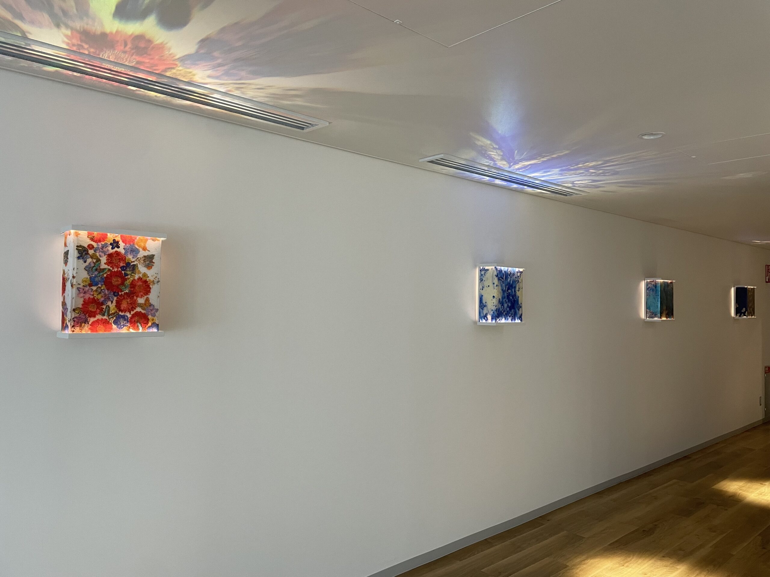 このように、壁に掛けられるタイプのものもあり、通路全体が色鮮やかになっていました。
